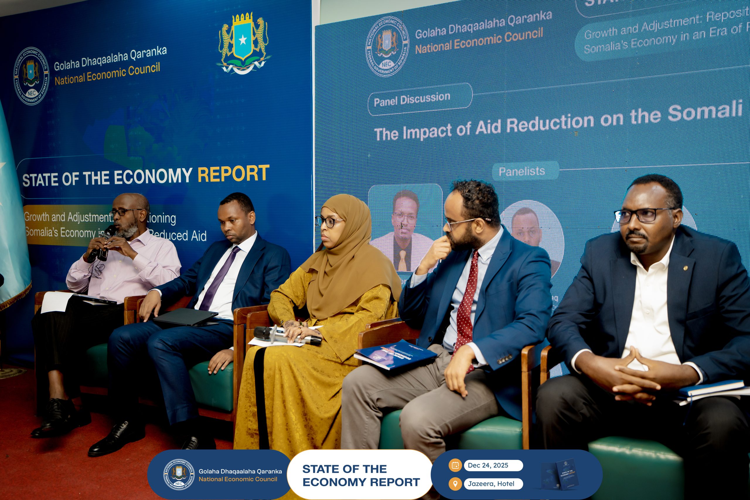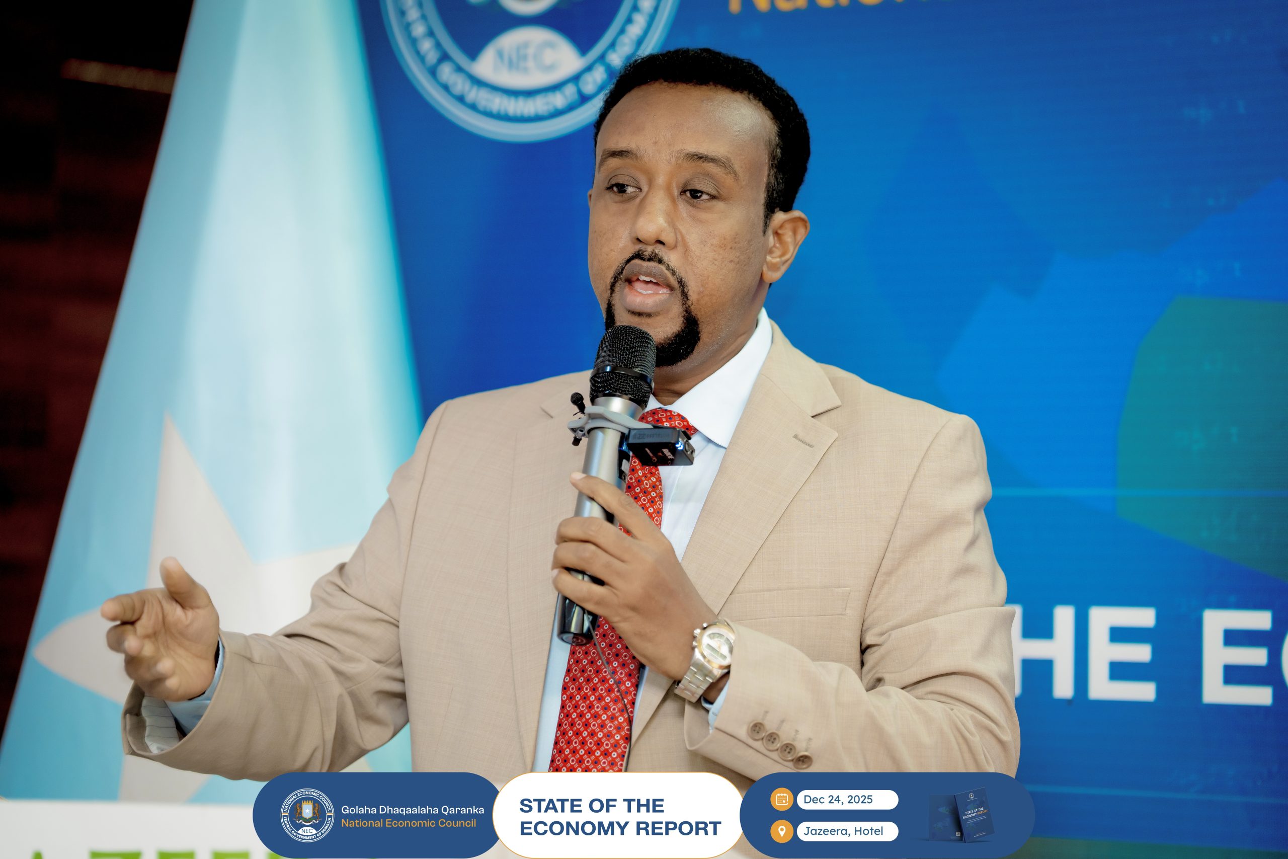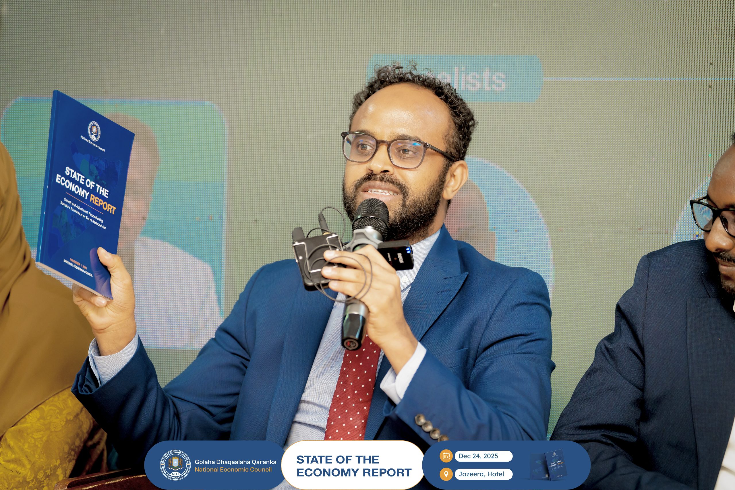 Mogadishu, 24 December 2025 — The National Economic Council (NEC) convened a high-level dissemination event to launch the Third Edition of its flagship State of the Economy Report 2025 (SER2025) at the Jazeera Palace Hotel in Mogadishu. Held under the theme “Growth and Adjustment: Repositioning Somalia’s Economy in an Era of Reduced Aid,” the event brought together senior government officials, private sector leaders, development partners, civil society representatives, and economic experts.