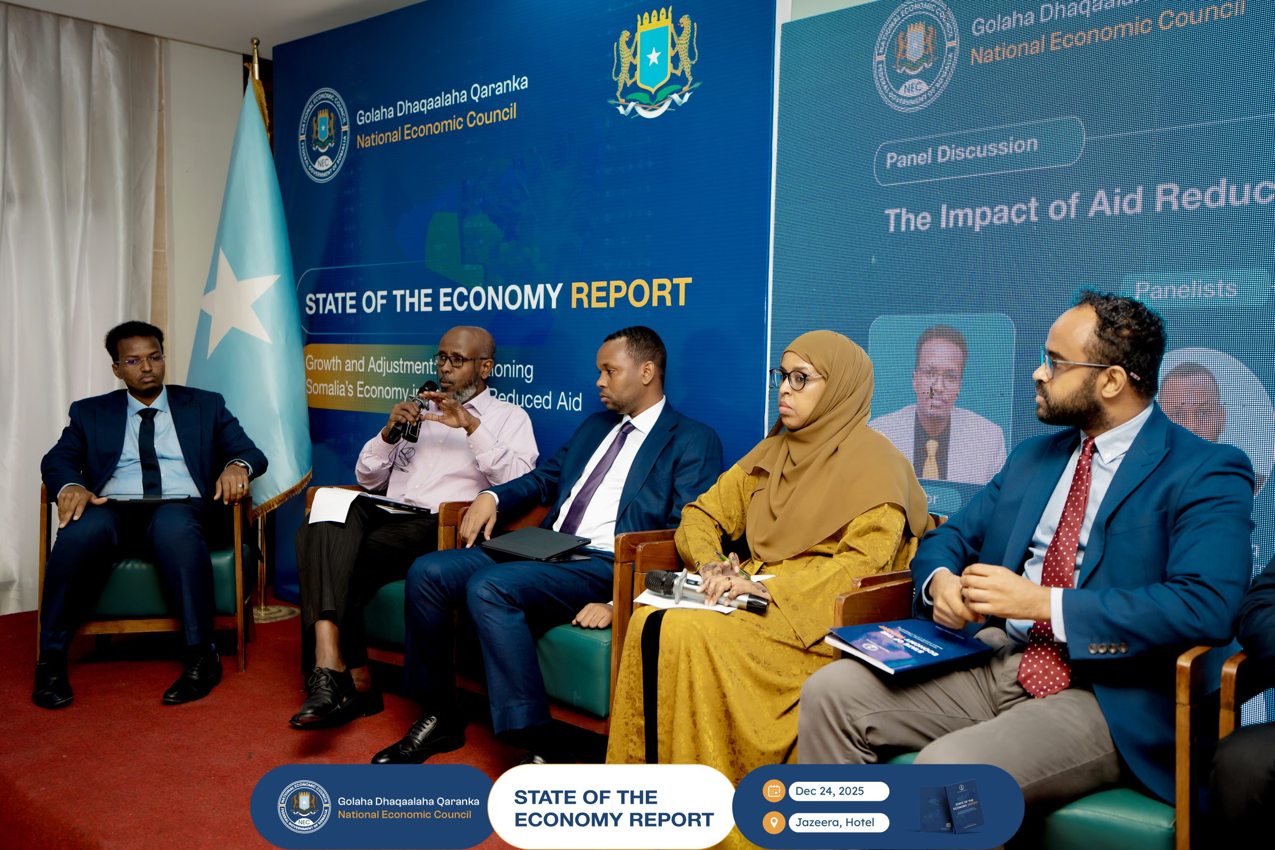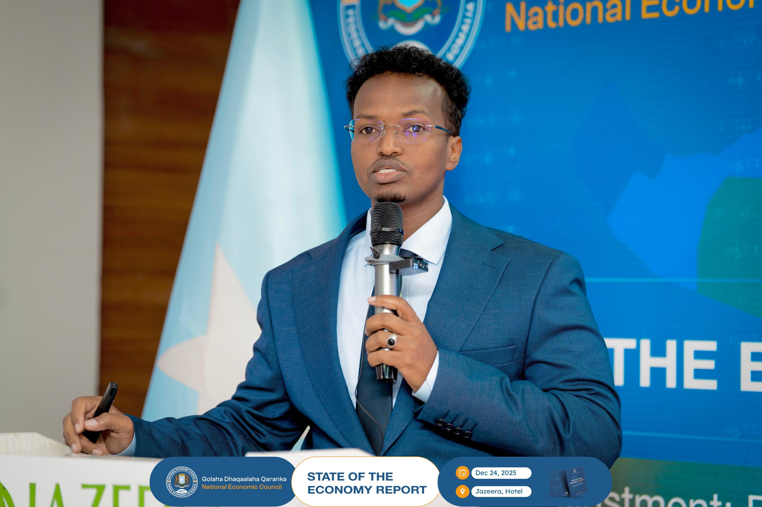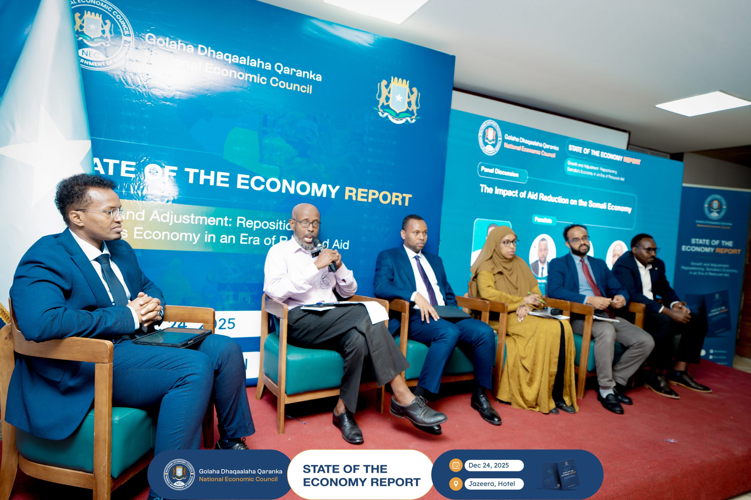 Mogadishu, 24 December 2025 — The National Economic Council (NEC) convened a high-level dissemination event to launch the Third Edition of its flagship State of the Economy Report 2025 (SER2025) at the Jazeera Palace Hotel in Mogadishu. Held under the theme “Growth and Adjustment: Repositioning Somalia’s Economy in an Era of Reduced Aid,” the event brought together senior government officials, private sector leaders, development partners, civil society representatives, and economic experts.